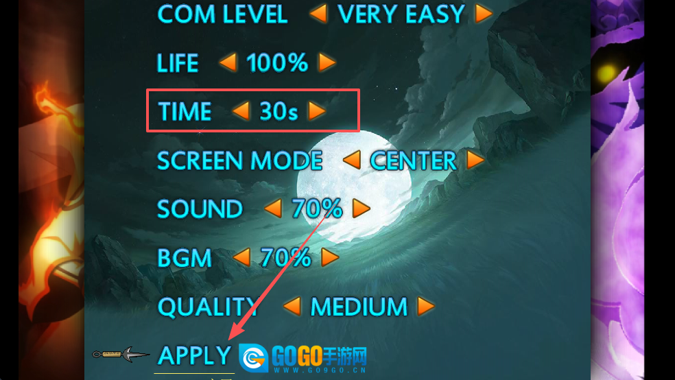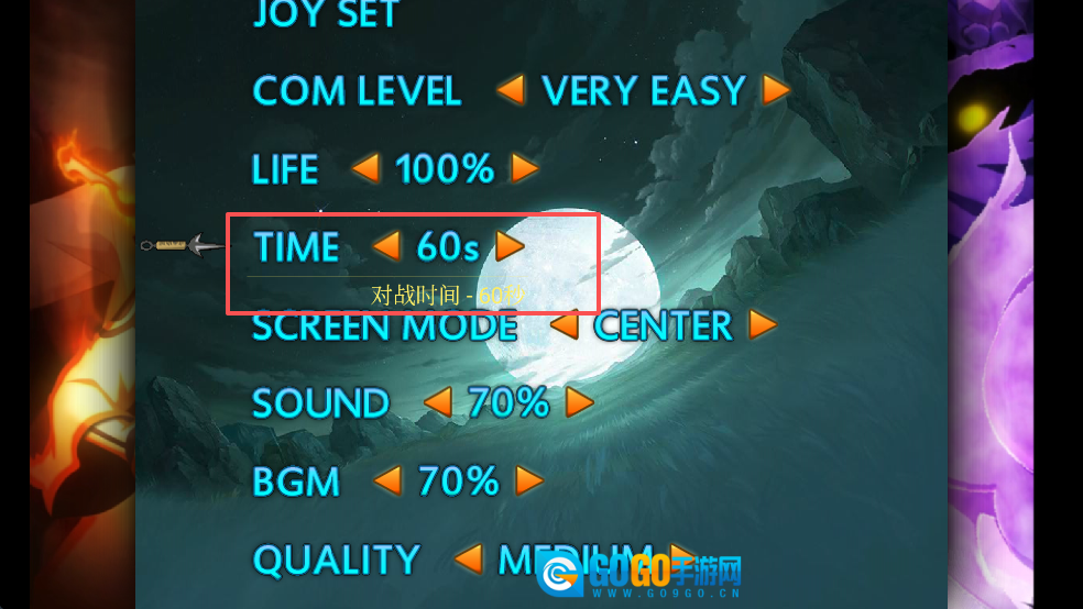 2. 接着点击“Time”来设定对局时长,其默认时长为60秒。