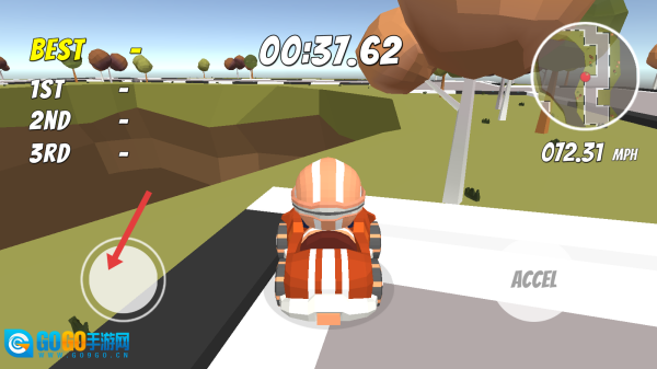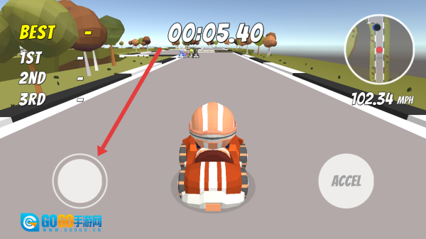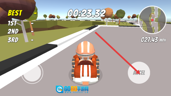 1. 比赛开启后,点击右侧的“ACCEL”进行加速操作,通过左侧的虚拟摇杆来掌控方向。起步阶段要紧随前车,争取抢占赛道上的有利位置。