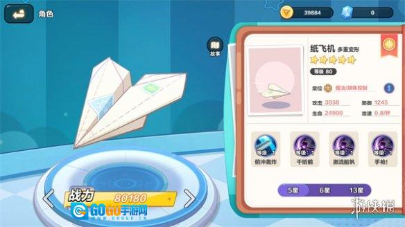 纸飞机具备额外20%的魔法免伤能力。每当纸飞机损失10%的生命值时,它便会瞬间折变成手枪,从枪膛中射出一枚巨大的五角星。这枚五角星在飞行过程中,会对路径上的所有敌人造成70%的伤害,并且将这些敌人砸晕。