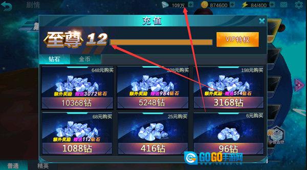 6、接下来进入游戏主界面,点击钻石后方的“+”。