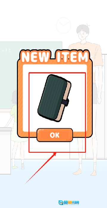 2、看到带有“NEW ITEM”的橙色框,按下下方橙色的“OK”按钮,即可确认新物品,箭头正指着它呢。