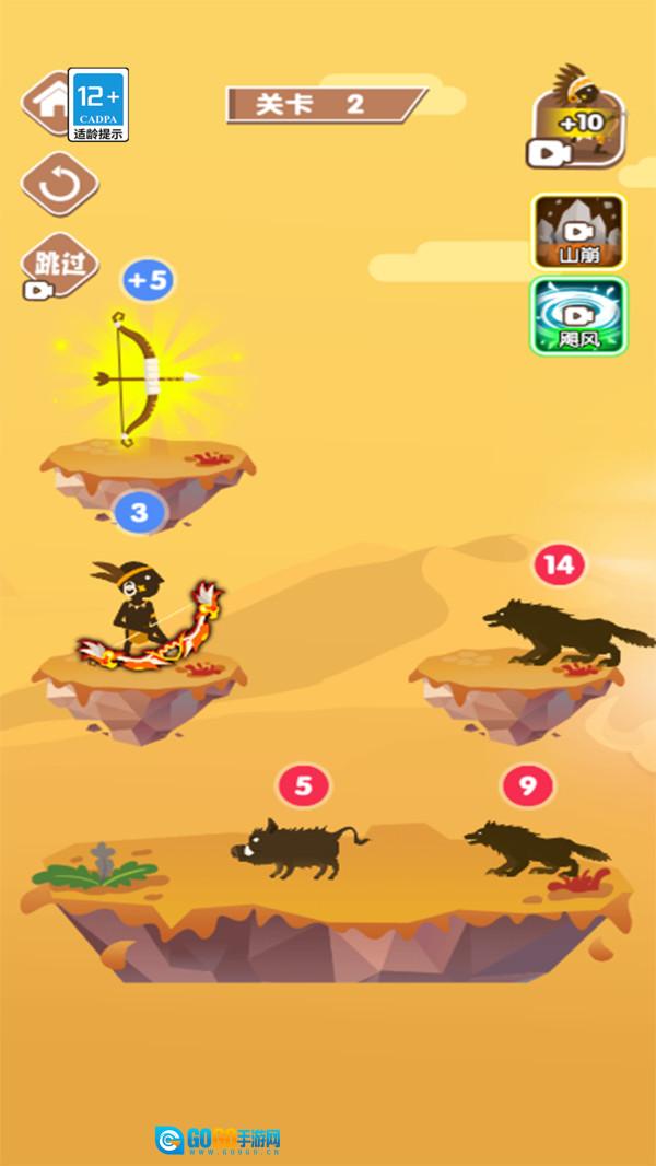 弓箭等级不断提升,通过简单的强化升级就能达成射箭目标。