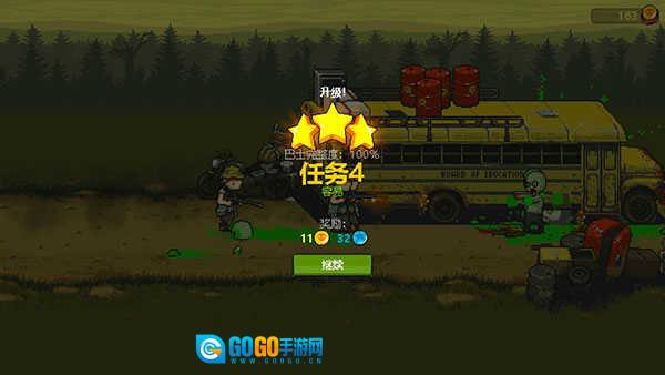 2、来到第二大关,难度明显提升,跑尸的情况增多,想要拿到三星颇具困难。此时,需要牢记僵尸的行动路线,熟练掌握投弹兵的使用技巧。要是实在无法通关,不妨选择卖车(即让巴士损失血量,借助卡尔来消灭僵尸)。
