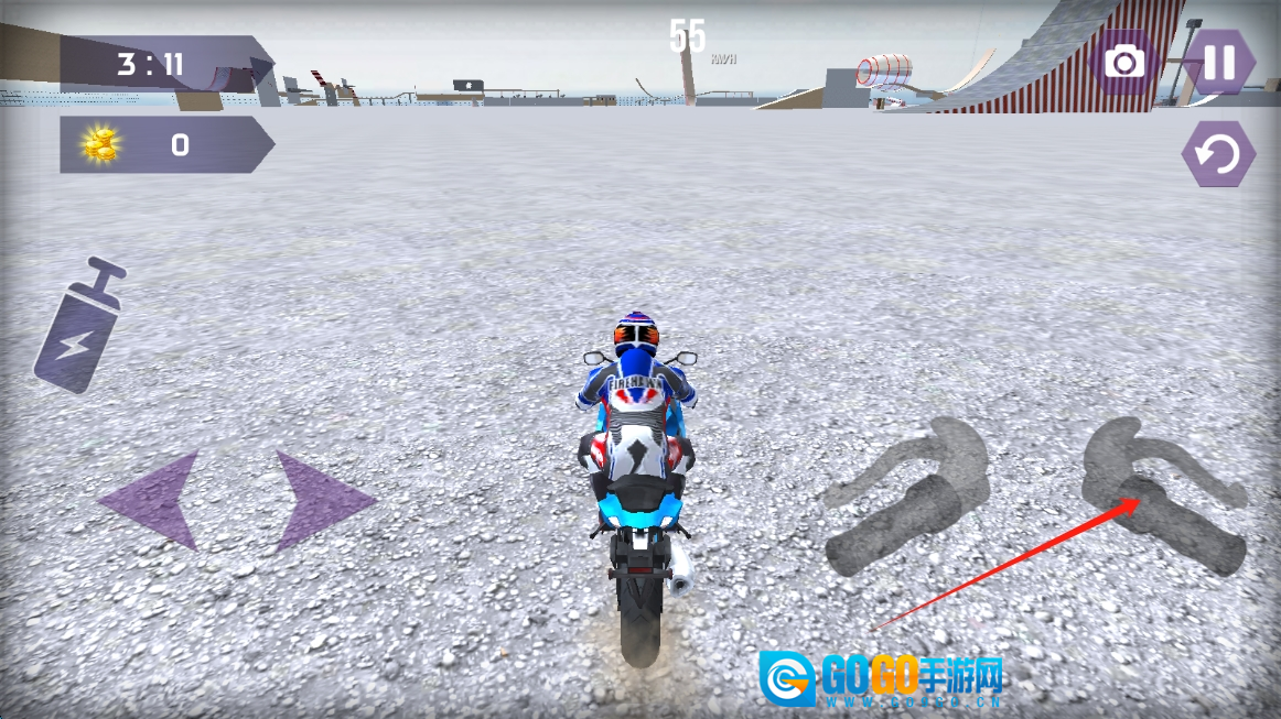 3、在游戏里,借助虚拟按键来灵活操控摩托车于赛道上行驶,巧妙躲避障碍,并加速前行,力求以最快的速度达成竞速任务。