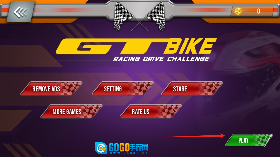 1. 在 GT - Bike - Racing - Drive - Challenge 的启动界面,轻点“PLAY”,即可开启摩托车竞速之旅。