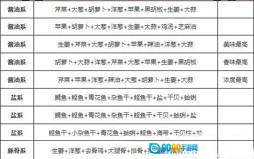 1. 酱油拉面:其制作材料包含苹果、生姜(两份)、大蒜(两份)、黑胡椒(两份)以及砂糖。