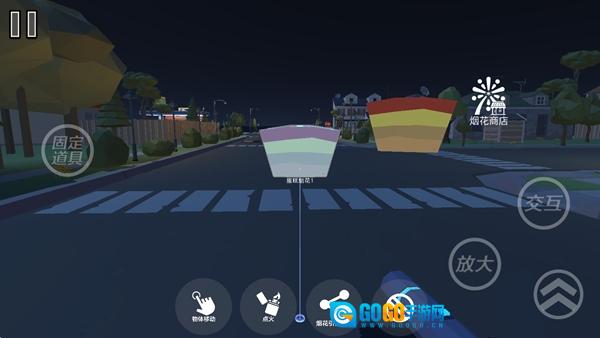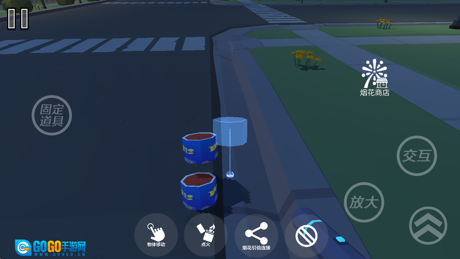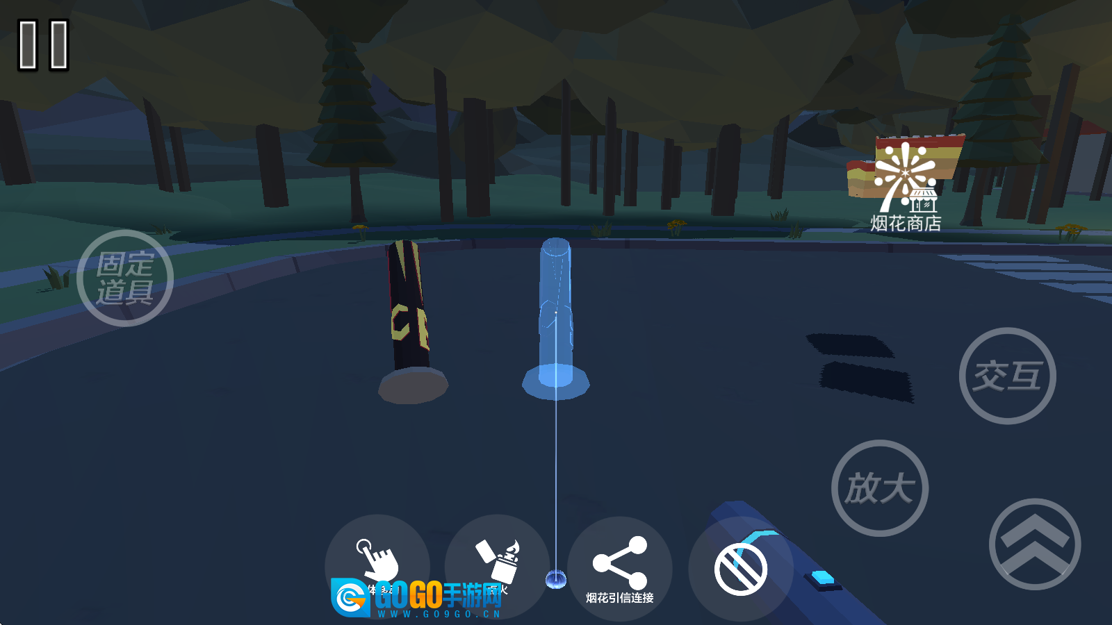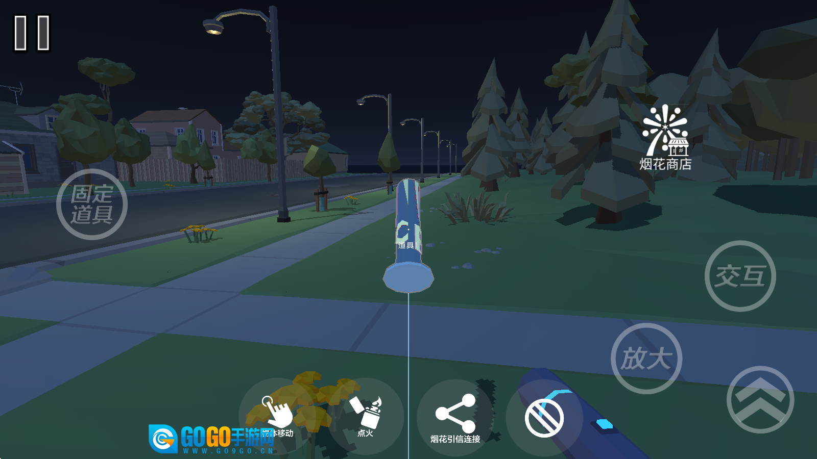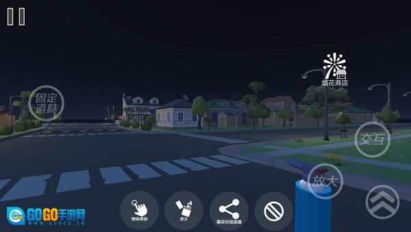 2、踏入地图后,从商店购置烟花,捡起并放置在恰当位置,调好时间后点火,观赏烟花升空。