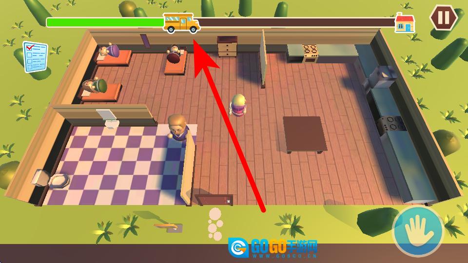 2、当进入第一关游戏场景时,场景顶部会出现一条进度条,进度条上带有校车图标。玩家需留意与校车相关的进度情况,以此来推动游戏进程。