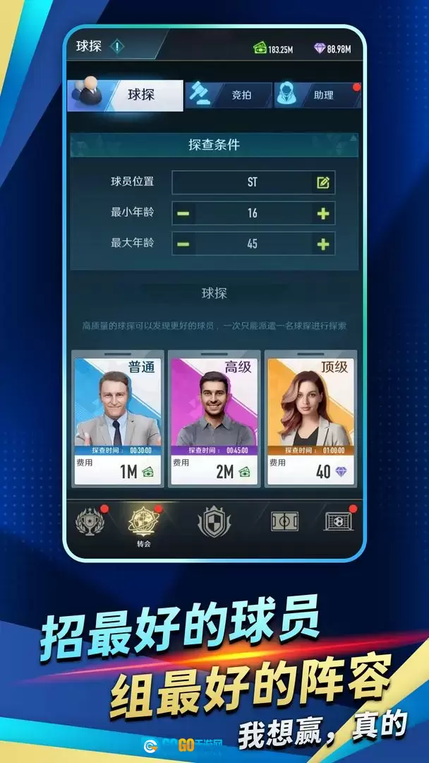 1. 玩家可从海量实力强劲的球员中挑选,体验极富创意的经营模拟挑战。