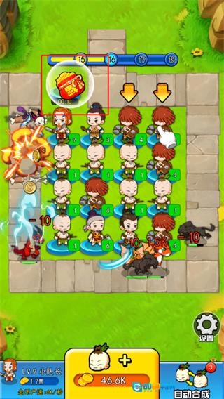 4、玩家也能够点击游戏右下角的按钮,以此实现英雄的自动合成,每次自动合成的持续时长为3分钟。