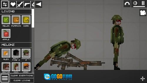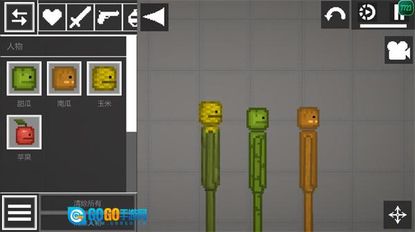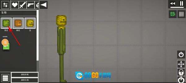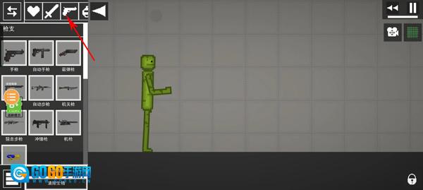 1. 打开甜瓜游乐场,进入游戏界面后,把武器拖至角色下方。