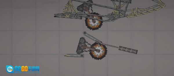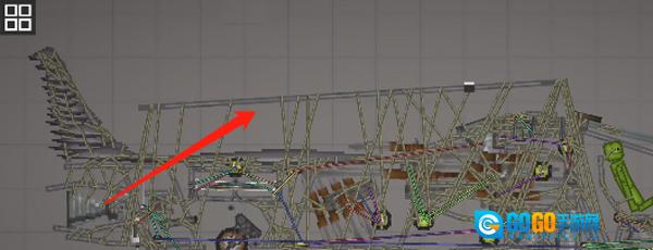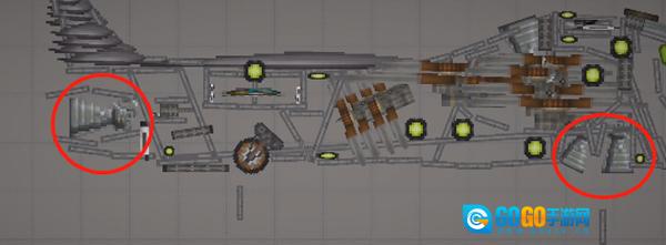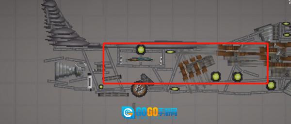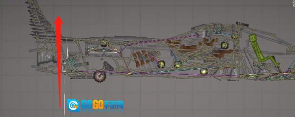 3、需留意的是,针对这种不稳定的结构,务必添加支柱,也就是机头中间的长铁块,将其设置为无重力且不碰撞状态,连接至机头外壳就行。