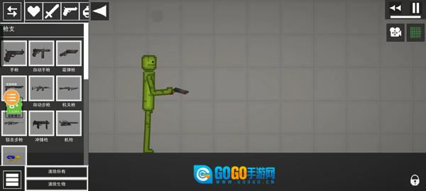 6、你还能够添加诸多武器,点击枪械后,武器便会直接出现在你的手中,此时点击枪支即可开枪。
