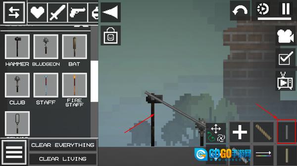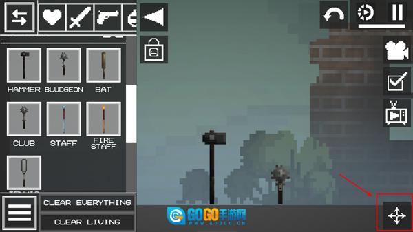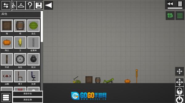 2、如图所示进入游戏后,点击左上角的菜单按钮,在地上添加两个物品。