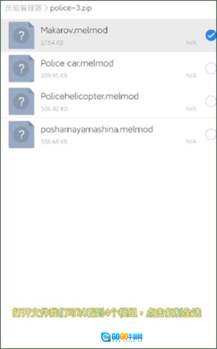1、若在第三方渠道获取到优质的模组,可借助“ES浏览器”打开其文件,随后将所有模组进行复制。