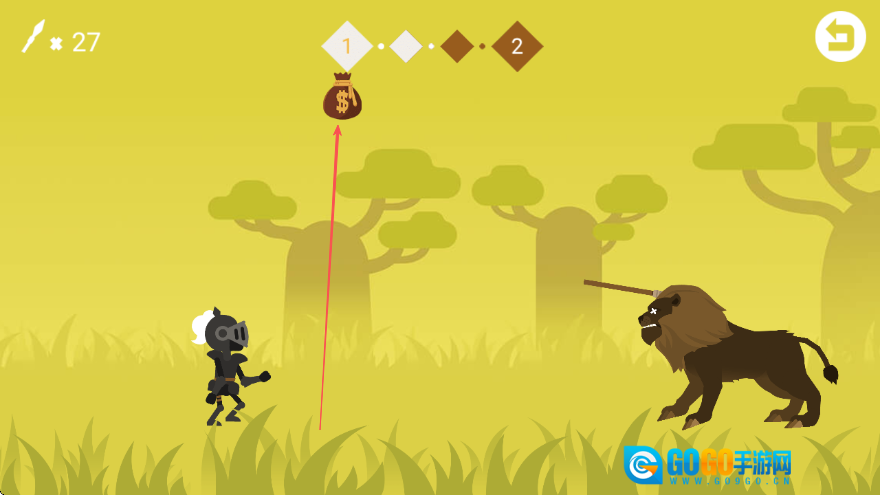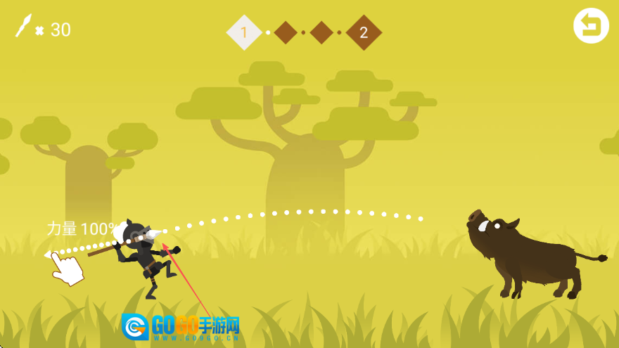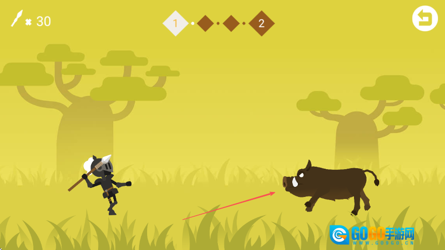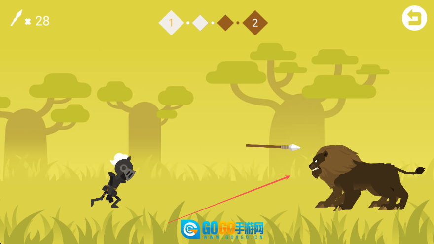 3、放开屏幕,通过投掷武器来攻击野猪,或者用以应对突然出现的狮子等其他野兽。