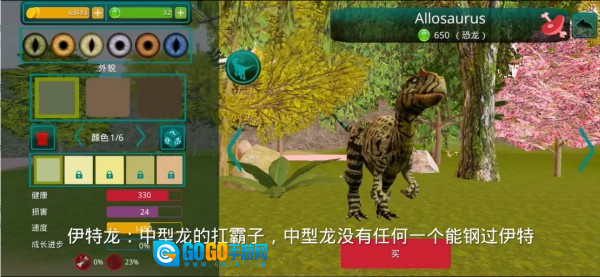在这款游戏中,玩家能够操控多种不同的恐龙角色。每一种恐龙都具备独一无二的攻击手段,且有着各自独特的成长路径。