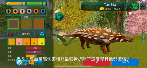 提供恐龙外观自定义功能,能够对皮肤颜色与花纹进行调节,塑造出别具一格的史前巨兽。