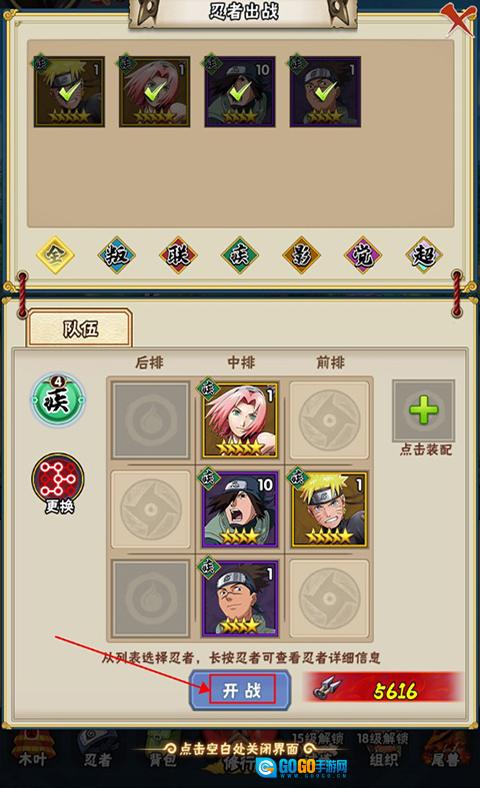 1、踏入游戏后,我们不妨先着手招募忍者,把一些角色召集起来,进而组建一支队伍。