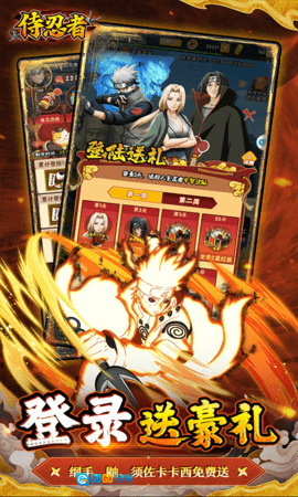3、登录即享丰厚豪礼,纲手、宇智波鼬、须佐卡卡西免费领取。