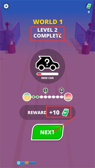 4、当成功完成【LEVEL2】后,玩家将会获得【+10金钱】的奖励。此时,只需点击【NEXT】按钮,即可顺利进入下一关,进而持续展开挑战并不断积累资源。