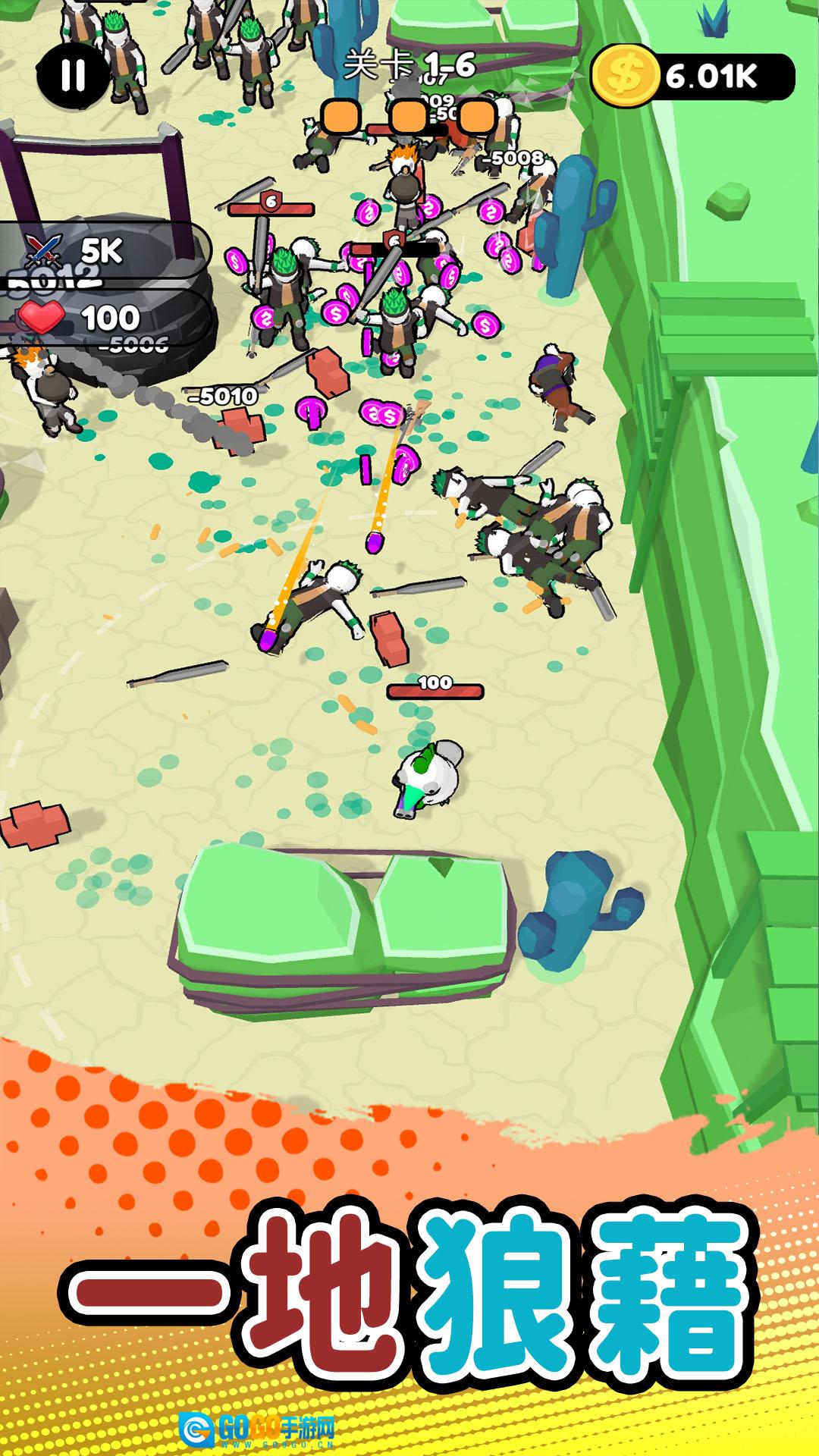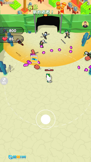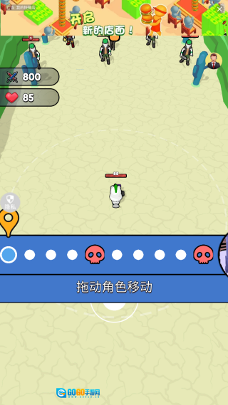 1、通过滑动屏幕拖动角色进行移动,途中遭遇的敌人皆会被消灭。