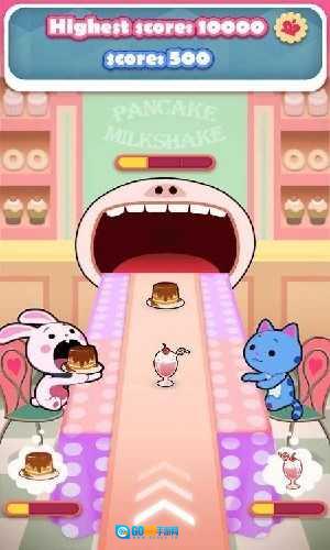 8、抢夺出现的食物,但并不是所有食物都能吃哦。要注意,兔子吃煎饼、猫咪吃奶昔,这个设定绝不能出错。