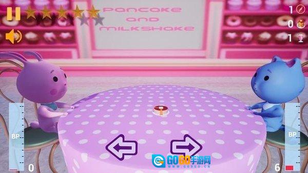 1、仅需轻拍,然后把薄煎饼与奶昔拖至两位挑战者处,务必仔细调整蛋糕与奶昔的投放时间。