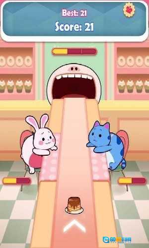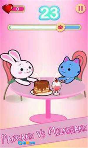 2、该游戏的挑战围绕兔子与小猫展开,只要把屏幕上的奶昔和蛋糕朝着兔子和小猫移动,就能获取极高的分数。