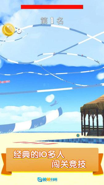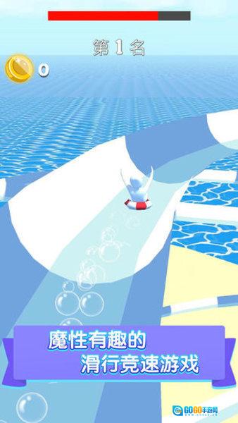 2、在水上乐园大作战游戏中,你需要以最快速度向终点冲刺,灵活改变滑行方向,从而超越其他玩家。