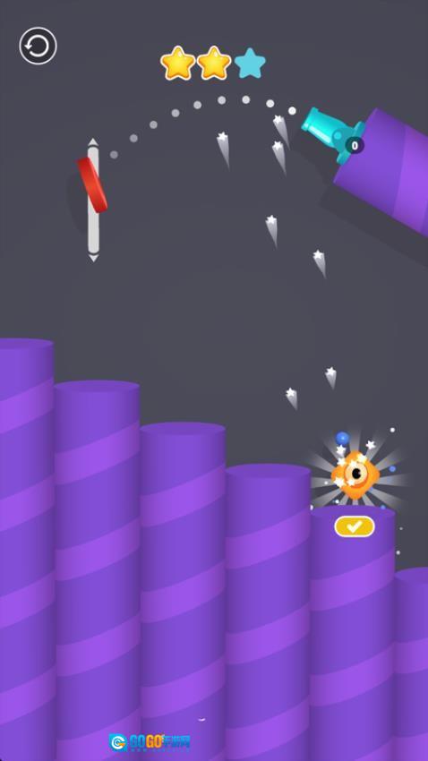 1. 你得滑动场景里的弹簧装置,对其角度与位置进行调整,使得炮弹在飞行过程中能够借助弹簧的弹力来改变行进路径,从而绕开障碍物、越过沟壑,精确击中隐匿在各类刁钻位置的小怪兽。