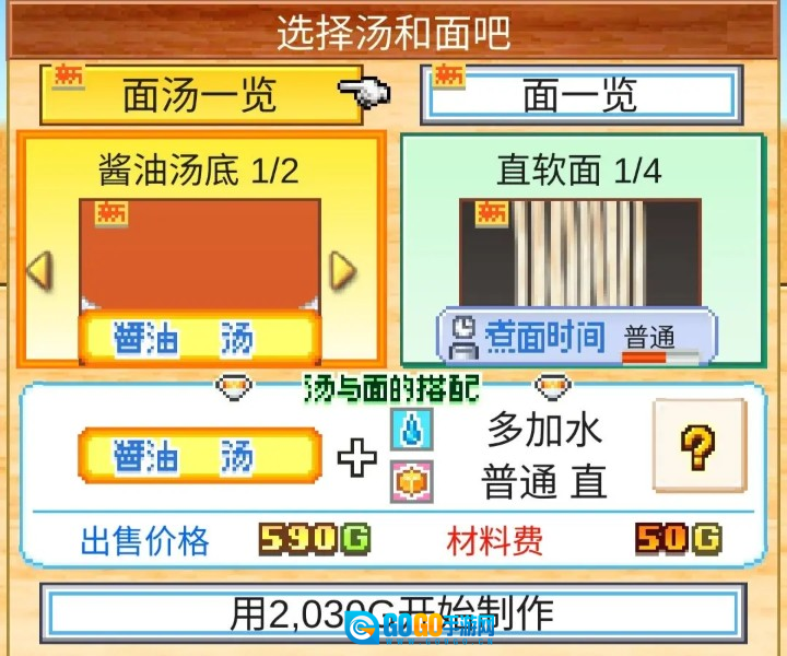 1. 第一碗面只需采用【酱油 + 直软面】的组合,负责出锅的服务员没有特定要求,配料也可随意选择(配料具体的搭配效果详见下文),最终的评分必定是F 。完成后能获得25000G。