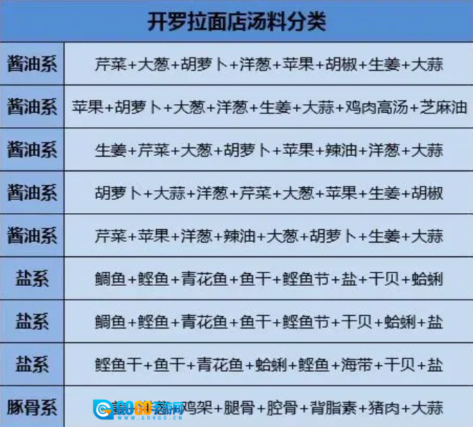 3. 有芹菜和大葱,还有胡萝卜、洋葱、苹果、胡椒、生姜、大蒜(2)苹果、胡萝卜、大葱、洋葱、生姜、大蒜,搭配鸡肉高汤与芝麻油。