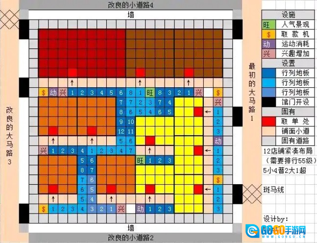 3、针对55级以下店铺的紧凑布局(11店铺)