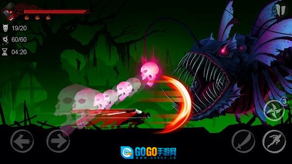 3、当遭遇障碍或者敌人时,轻点屏幕右下角的跳跃按键,操控忍者通过跳跃来躲避障碍或靠近敌人。