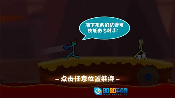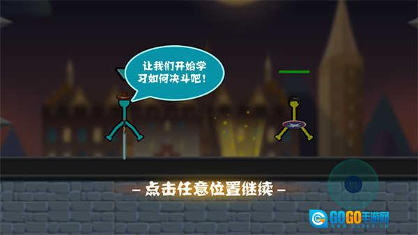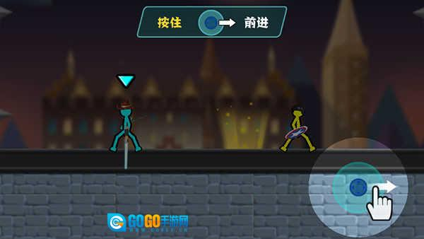 3、在游戏里,玩家操控一个火柴人,借助简单的横版摇杆操作,让火柴人展开热血格斗。