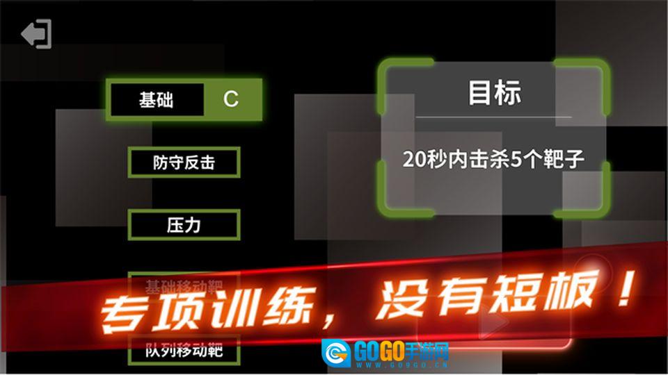 2、专业训练模式:设有数十种专业射击训练科目。其中,速射挑战旨在锻炼极限反应能力,移动靶训练则着重提升追踪能力。每个模式都专注于对不同射击技巧进行专项强化。