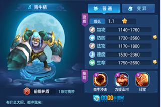 青牛精,这可是新手前期必定要培养的肉盾角色。它释放的技能可以对敌方前排进行嘲讽,具备一定的控制效果,绝对是新手过渡阶段极为好用的肉盾选择之一呢。