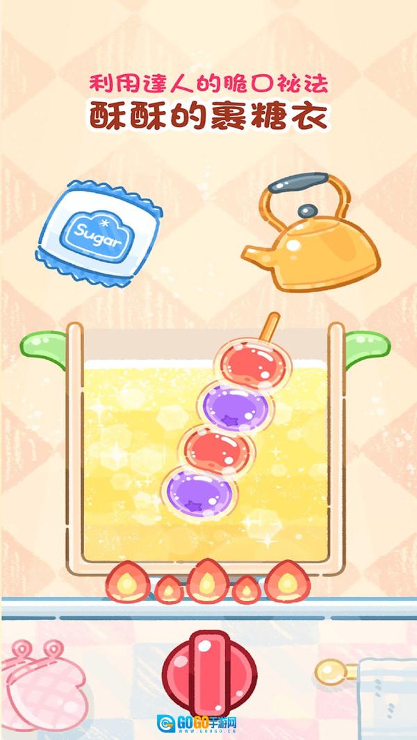 1. 糖浆熬制属于关键步骤,玩家要把控好火候以及熬制时长,借助点击屏幕来调整火候的大小,在熬制期间还得留意糖浆的状态。