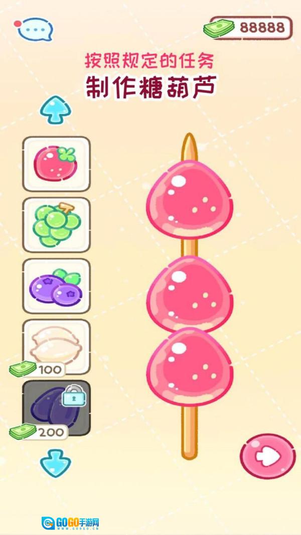 2、只要完成糖葫芦制作,玩家就能获得金币奖励。利用这些金币,玩家可以购买更多食材,持续探索全新的糖葫芦制作方法。