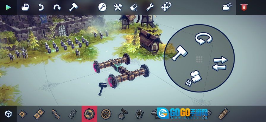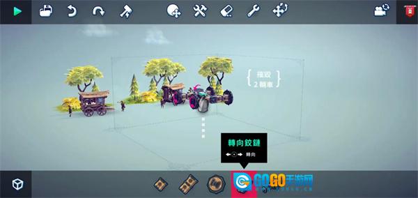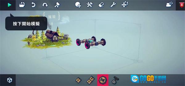 3、完成不同部件与方块的组合后,点击左上角的绿色箭头,即可开始操控你的器械。