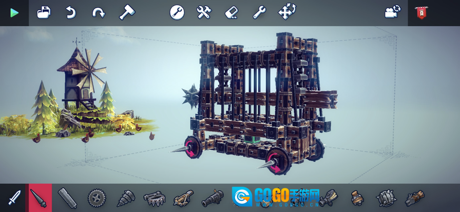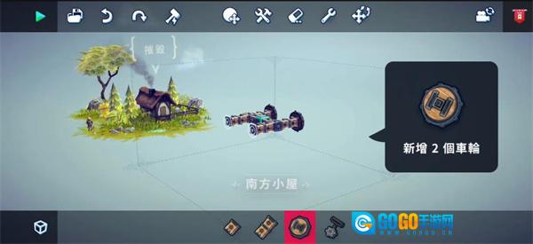 2、玩家进入关卡后,需自行建造器械以摧毁目标,可供使用的配件会显示在下方。