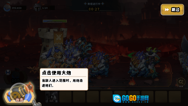 2、自家的大炮具备蓄力机制,当能量条蓄满时,点击便能发射出强力炮弹,对敌方单位造成极为可观的伤害。