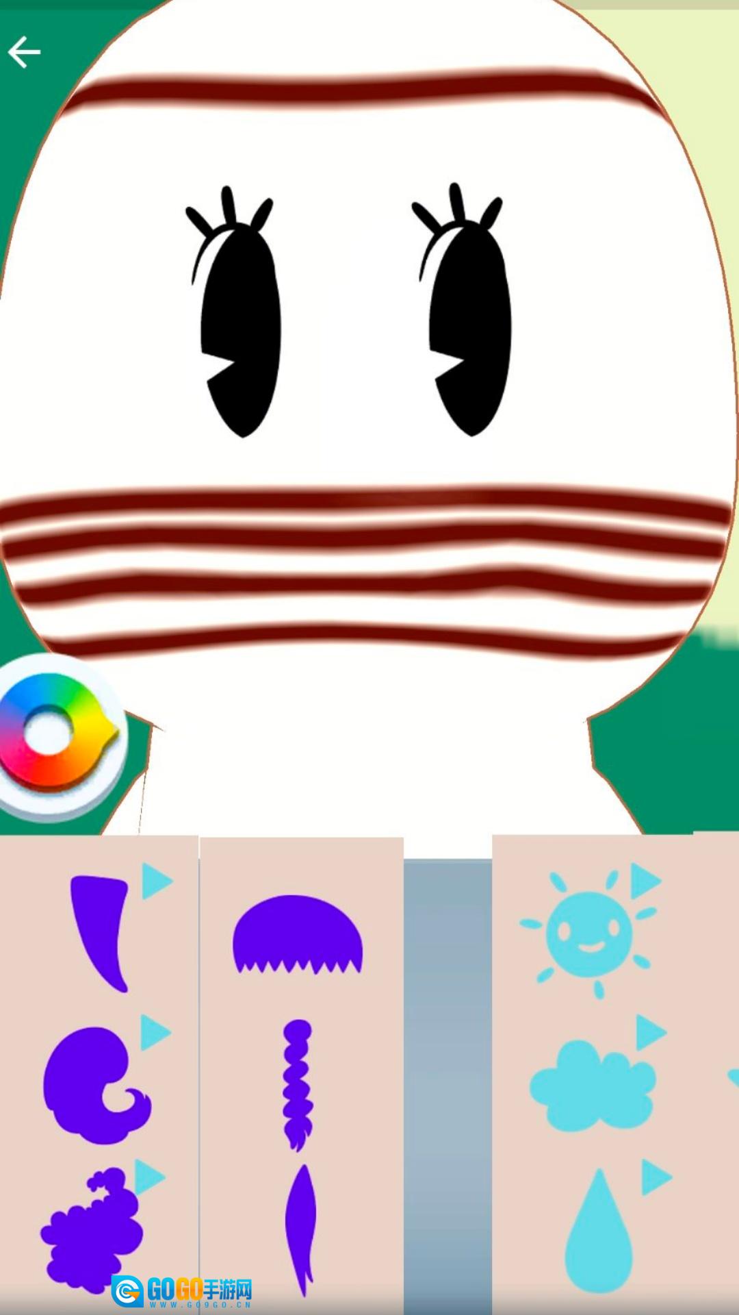 2. 如图所示,进入游戏后,你会得到一个一应俱全的娃娃。此刻,你需要为它挑选不同的五官造型。