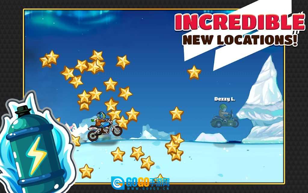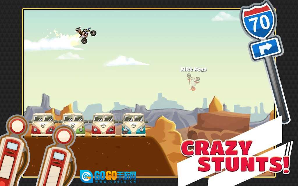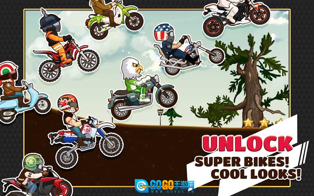 4、充满趣味的摩托车竞速闯关挑战,采用横版操作玩法模式,搭配超精致的游戏立绘。