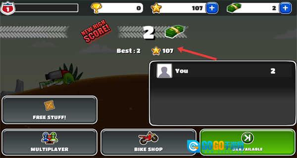 4、骑行结束后,界面会展示得分、星星数量等成果,你可以在此查看自己的最佳成绩,获取奖励,或进入其他功能界面。