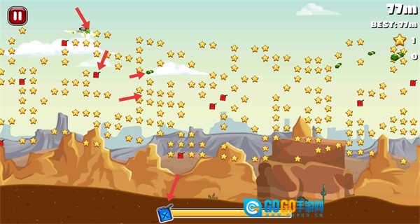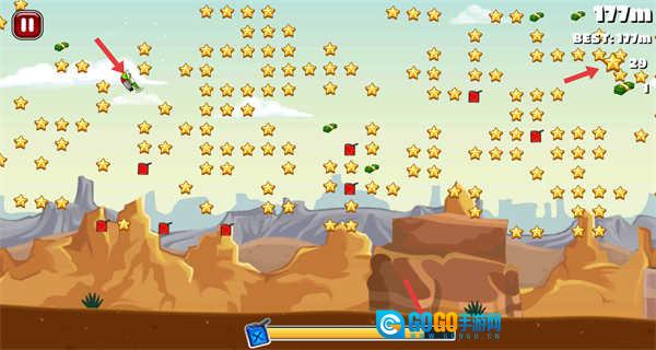3、持续驾驶摩托车,尽量收集更多的星星、钞票以及油桶。随着飞行距离的增长,分数也会随之提升。在此过程中,要留意进度条,以保证拥有足够的续航能力。