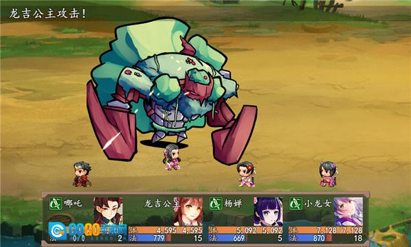 8、龙吉公主:典型的傻白甜大小姐形象。作战模式为听调不听宣,自动投入战斗。她手持乾坤如意袋,里面装满了各式各样的法宝,凭借这些法宝,可随机施展多种法术。