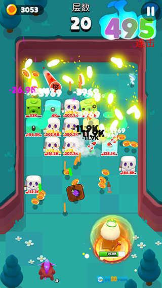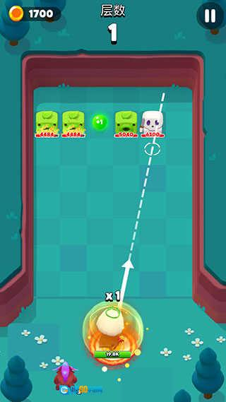 1、玩家操控自己的球持续向前发射弹射,击中敌人,在此过程中,不仅能够收集硬币,还可获取道具。