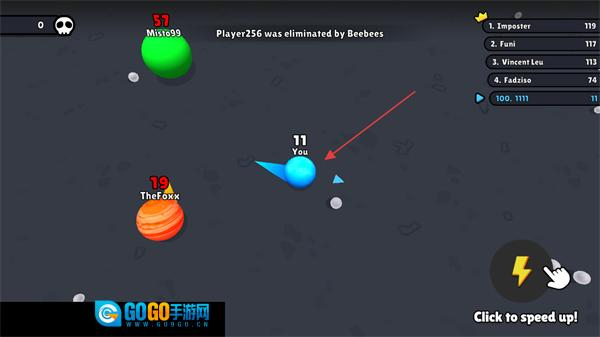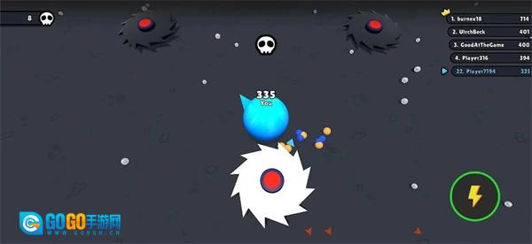 4、倘若遭遇大球追击,可点击右下角的加速按钮来实现逃脱。